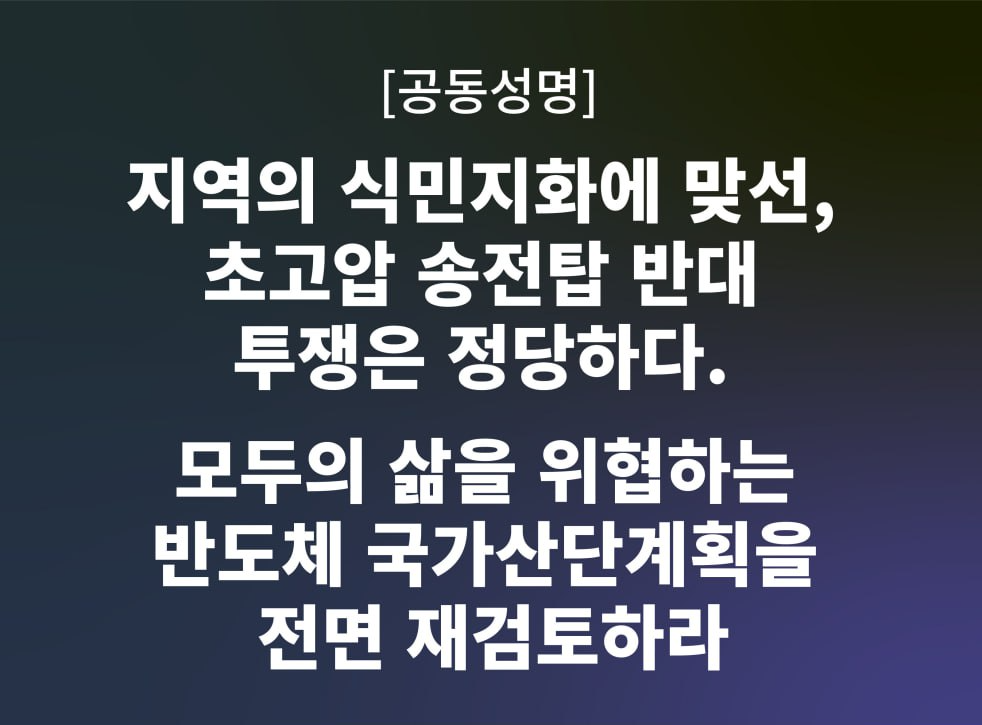 🗼 모두의 삶을 위협하는 반도체 국가산단계획을 전면 재검토하라. |